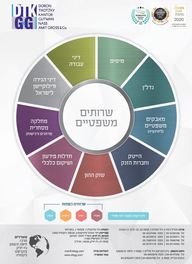משרד עורכי דין דורון, טיקוצקי ושות' עומד לרשותך בכל שאלה: סניף מרכז 03-6109100, סניף חיפה 04-8147500, נייד: 054-425105